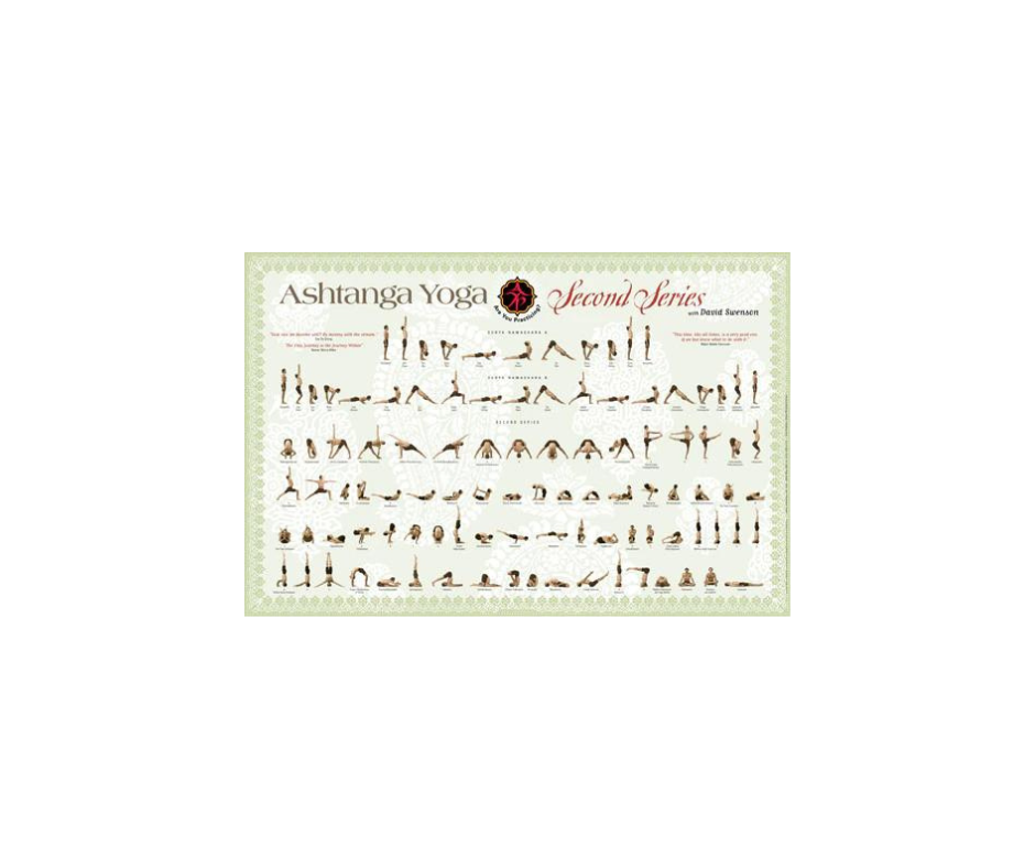 Display the full Ashtanga Yoga Second Series — also known as the Intermediate Series / Nadi Shodhana — in your studio or home with this detailed wall chart. The Second Series Poster includes all postures in sequence, Sanskrit names, plus Surya Namaskara A & B. Ashtanga Yoga Productions